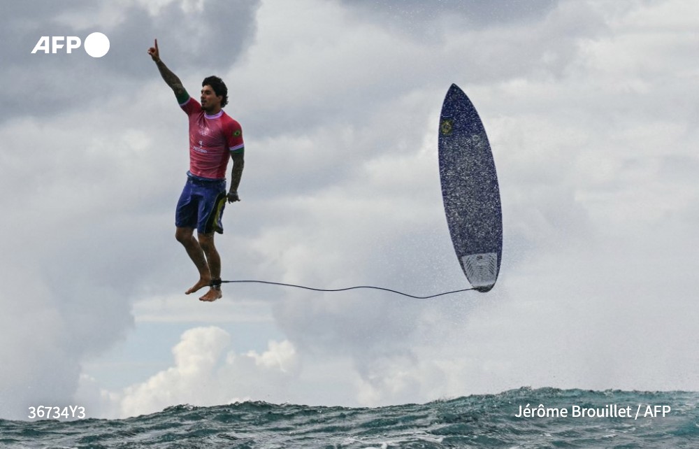 It's one of the most widely used images from the Games: Brazilian surfer Gabriel Medina seemingly levitating above the waves, finger to the sky, surfboard vertically behind him.