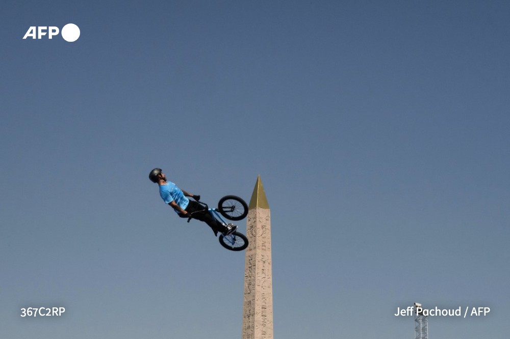 His eye-popping picture of a BMX ace seemingly riding to the top of an ancient Egyptian obelisk on his bike during the Paris Olympics has gone around the world.