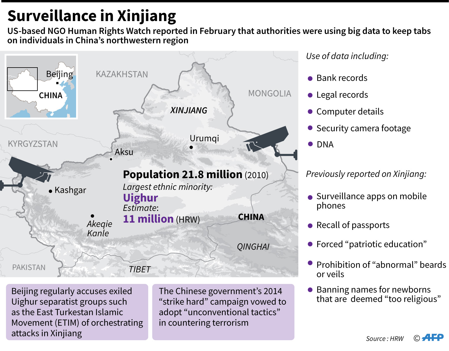 The resulting crackdown has triggered international alarm, with the US State Department last week saying it is increasingly concerned over "widespread detentions and the unprecedented levels of surveillance".
